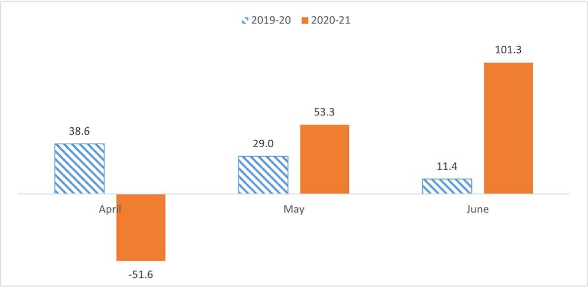 आकृति- 4. मनरेगा नौकरियों में काम करने वाले व्यक्तियों में साल-दर-साल वृद्धि (प्रतिशत में)