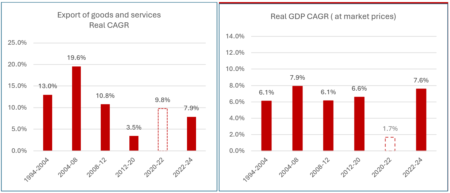 आकृति-3. भारत का वास्तविक निर्यात और सकल घरेलू उत्पाद (जीडीपी) वृद्धि दर