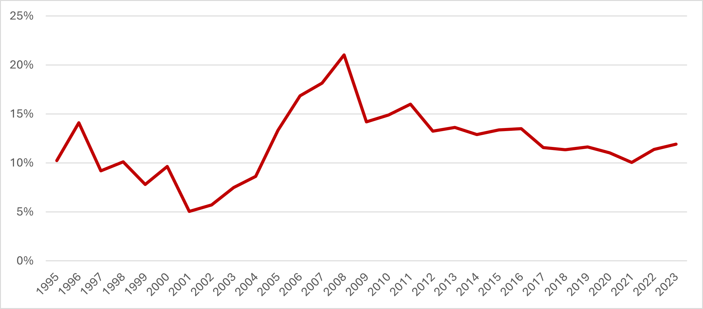 आकृति-1. निजी कॉर्पोरेट सकल पूंजी निर्माण से सकल घरेलू उत्पाद अनुपात (वर्तमान मूल्य)