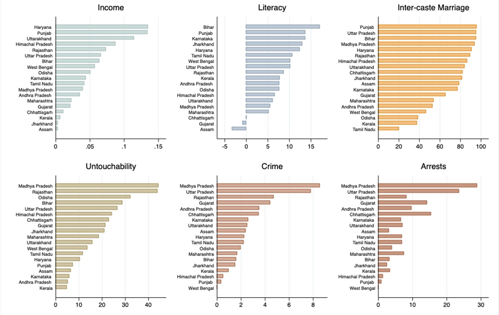 - Sharma, Smiti (2015), “Caste-based crimes and economic status: Evidence from India”, Journal of Comparative Economics, 43(1): 204-226. Available here.