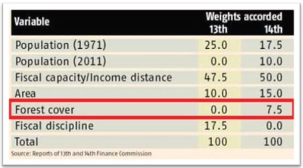 “We recognise that States have an additional responsibility towards management of environment and climate change, while creating conditions for sustainable economic growth and development. Of these complex and multidimensional issues, we have addressed a key aspect, namely, forest cover, in the devolution formula. We believe that a large forest cover provides huge ecological benefits, but there is also an opportunity cost in terms of area not available for other economic activities and this also serves as an important indicator of fiscal disability. We have assigned 7.5 per cent weight to the forest cover.”