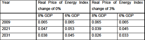 Table 1. Energy intensity of GDP (gm/Rs) for 8% GDP growth and 6% GDP growth Scenarios