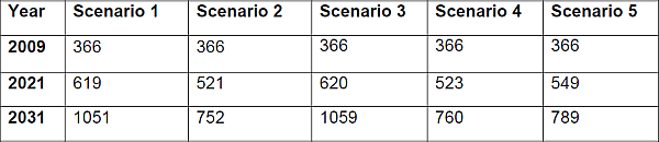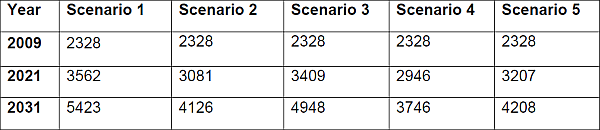 • Scenario 4: 8% GDP growth rate, 3% rise in real energy price per year, accelerated use of new renewables