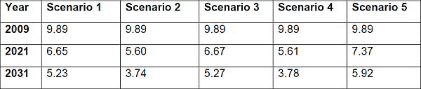 • Scenario 5: 6% GDP growth rate, 0% rise in real energy price per year, baseline use of new renewables