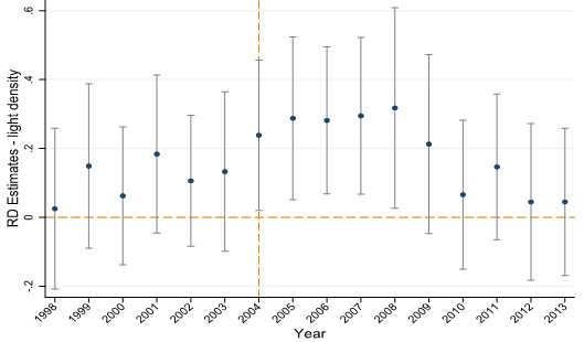 Figure 4. Effects of RSVY on taluk-level nighttime light intensity