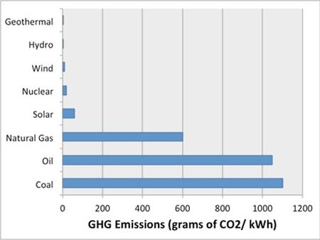 Figure 2. Global warming pollution intensity of electricity generation based on fuel type