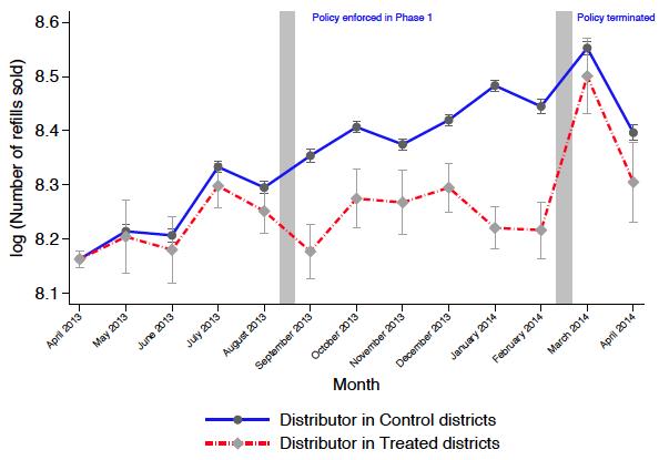 The DBTL policy reduced household LPG purchases by between 11% and 14% (Figure 3). When the DBTL policy was terminated, status quo dual-prices resumed. The results show that, after the policy termination, household fuel purchases in DBTL districts increased quickly.