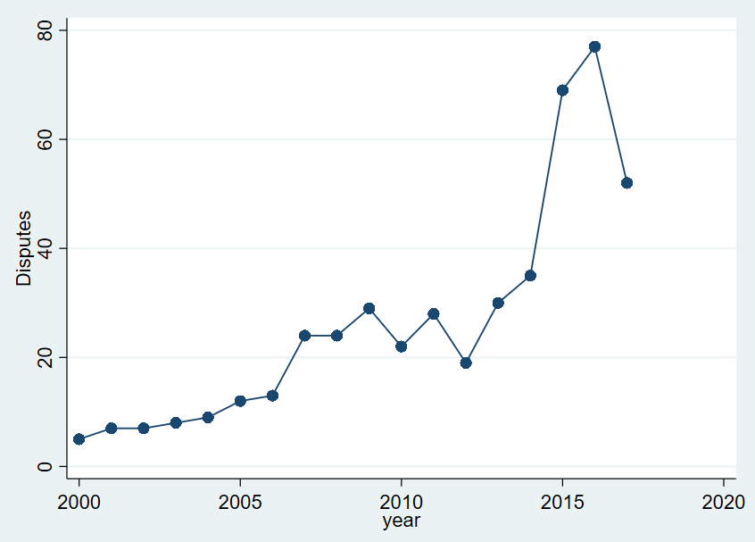 Figure 1. Number of land disputes in India, from 2000-2017