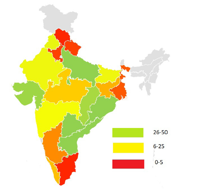 Figure 2. Distribution of land disputes in India by state, from 2000-2017