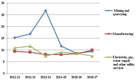 | Mining & Quarrying | -13.79 | 0.36 | 0.1 | 3.94 | 5.03 | 5.73 | 1.5 |