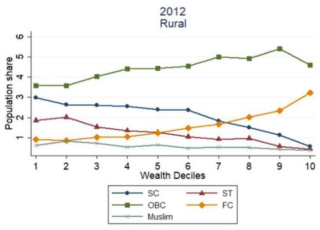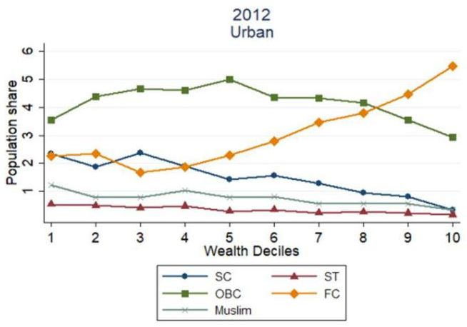 Note: We observe that FC group’s population share is more than 50% in the top decile whereas it forms only 20% of urban population share.