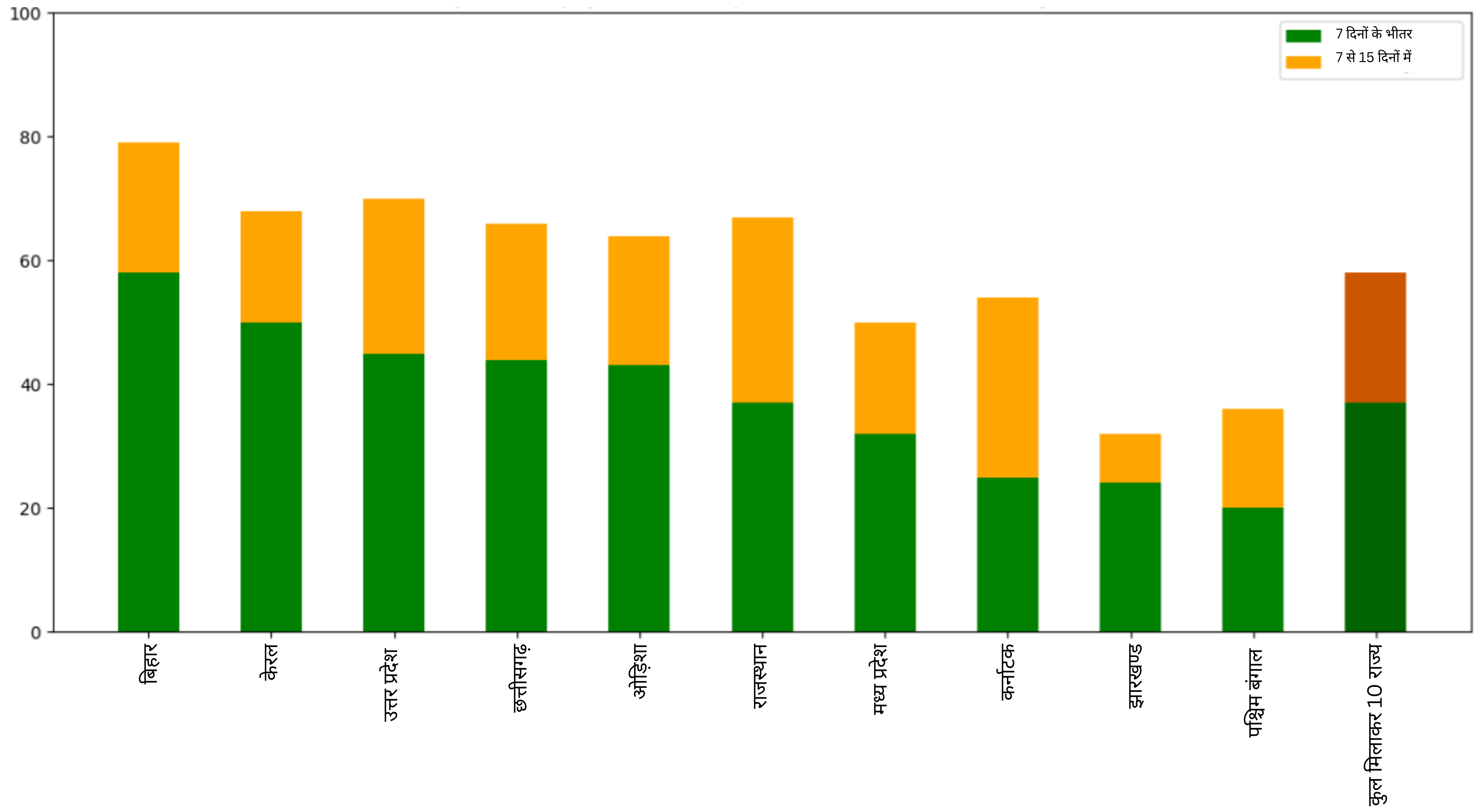 आकृति-10. 7 और 15 दिनों के भीतर कार्रवाई किये गए भुगतान आदेशों का अनुपात, वर्ष 2021-22 (%)