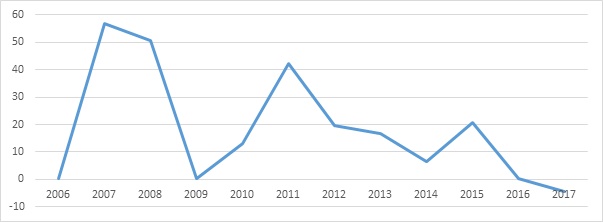 Figure 1. Growth in external commercial borrowing, 2005–2017 (y-o-y , in %)