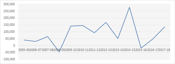 Figure 3. Foreign Institutional Investment (FII), 2005-06–2017-18 (in Rs. crore)