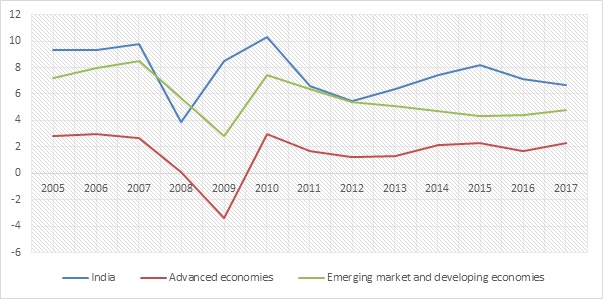 Finally, at the time of the crisis, the slowdown in advanced countries led to a fall in export demand in India and other emerging economies. The developed world is now getting back to a steady growth trajectory. However, this may not imply an increase in trade given the present sentiment of protectionism.