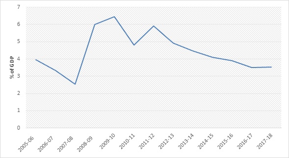 Figure 6. Fiscal deficit, 2005-06–2017-18 (% of GDP)
