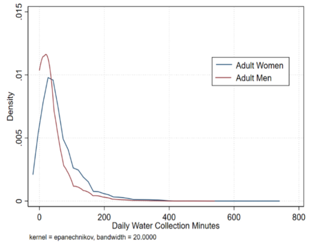चित्र 1. वयस्क महिलाओं और पुरुषों द्वारा दैनिक जल संग्रहण (मिनटों में)