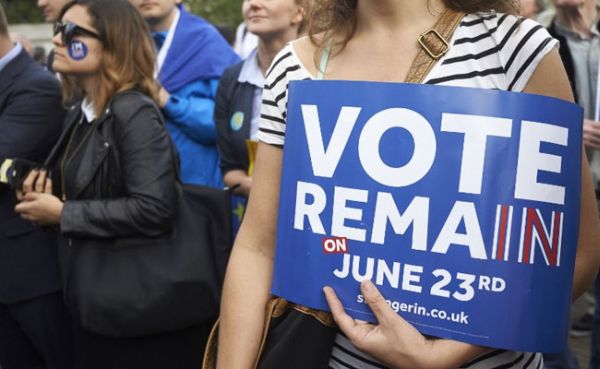 Pro-EU supporters hold placards and banners during a ´Yes to Europe´ rally in London´s Trafalgar square, ahead of the EU referendum (AFP Photo)