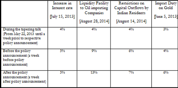 Table 1. Impact of policy announcements on exchange rate
