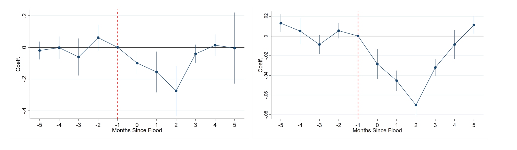 Figure 2. Effects of floods on sales (left panel) and downstream purchases (right panel)