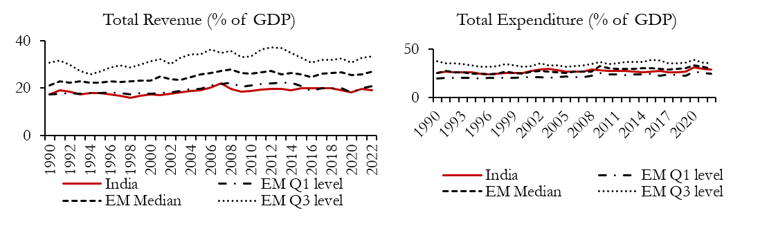Figure 3. Comparing India’s fiscal indicators with emerging market (EM) averages
