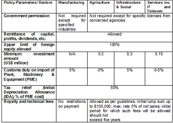 As a result of policy reforms and liberalisation measures undertaken since the 1980s, Pakistan today offers one of the most investor-friendly and liberal investment regimes in the South Asian region. The government of Pakistan has put in place a policy framework on FDI that is transparent, predictable and easily comprehensible. Foreign investment in Pakistan is at present regulated by the ‘Investment Policy 2013’. The policy consolidates and liberalises existing policies by related line ministries, besides drawing up futuristic strategic programmes to implement the policy. The investment policy offers foreign investors several incentives and attractive investment packages as given below.