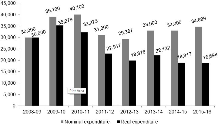 Figure 1. Nominal and real expenditure on MNREGA