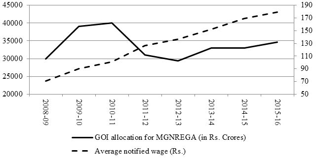 Figure 2. MNREGA expenditure and average notified wage