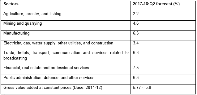 Table 2 shows our projected growth for the second quarter of 2017-18 for eight broad sectors.