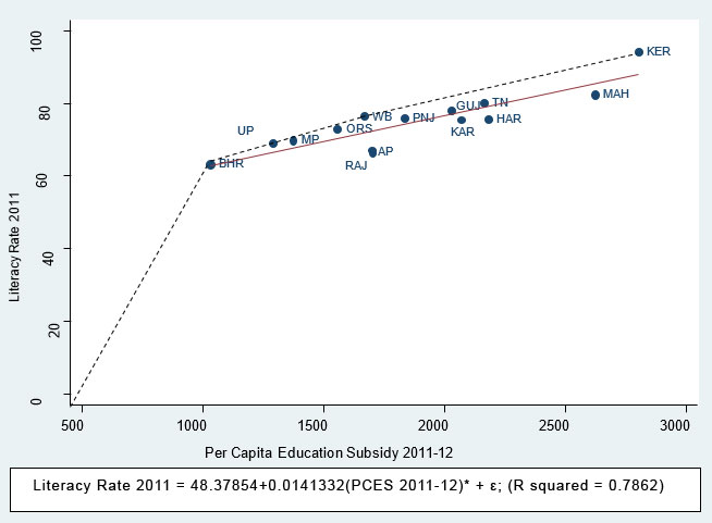 Figure 2a. Education service delivery (literacy rate) and per-capita education subsidy, 2011-12