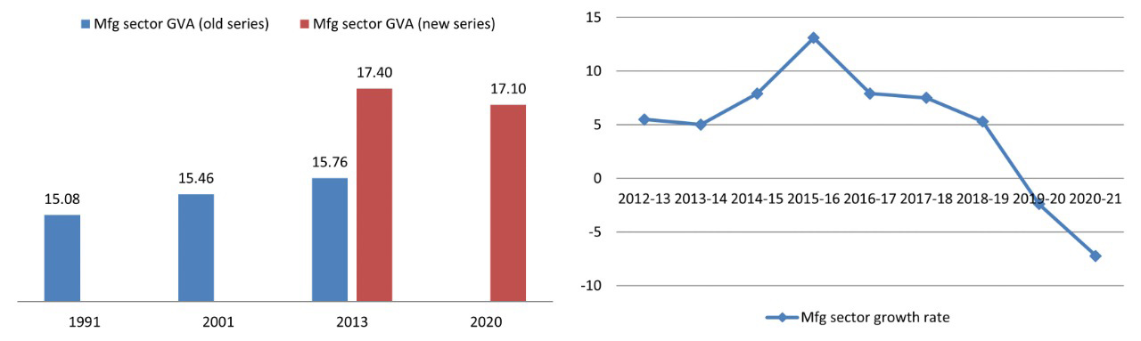 Figure 4. Manufacturing sector performance – share in GDP (left panel) and growth rate (right panel)