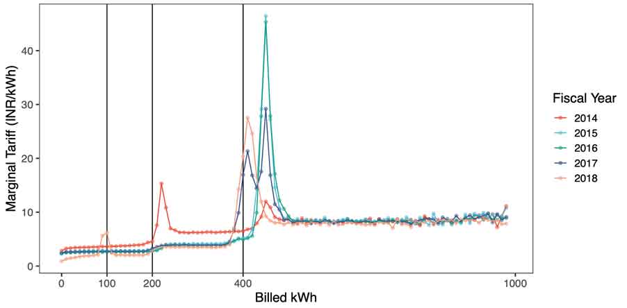 Figure 1. Marginal price (Rs./kWh) billed to residential customers, 2014-2018