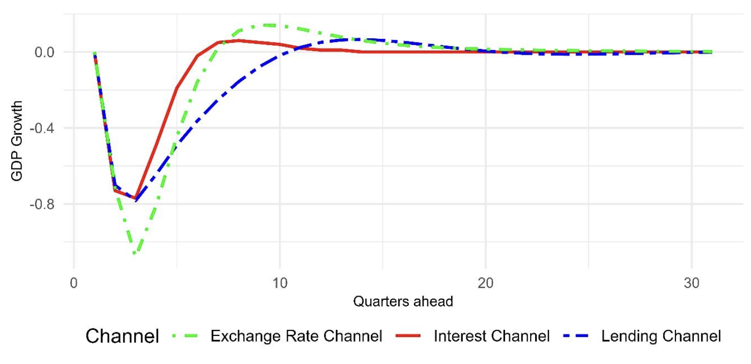 Our research is motivated to address these concerns by analysing the relative strength of each monetary transmission channel while entirely restricting the impact of other channels, after accounting for structural changes.