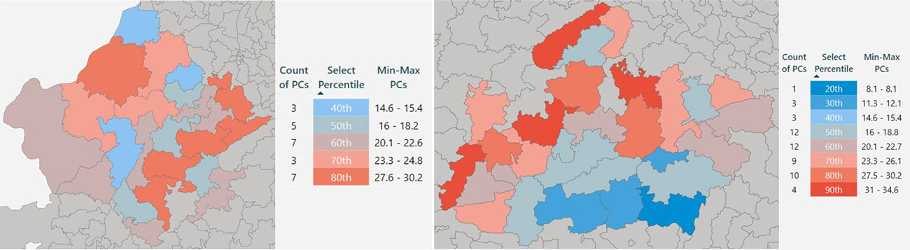 आकृति-4. राजस्थान (बाएं) और मध्य प्रदेश (दाएं) द्वारा बाल विवाह उन्मूलन में की गई प्रगति