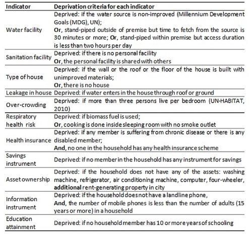 Table 1. Non-monetary indicators and deprivation criteria