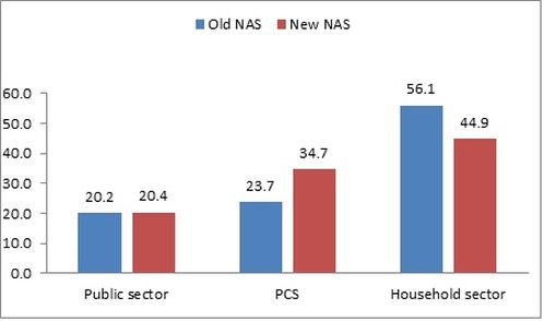 Figure 2. Institutional composition of GDP in old and new NAS series for 2011-12