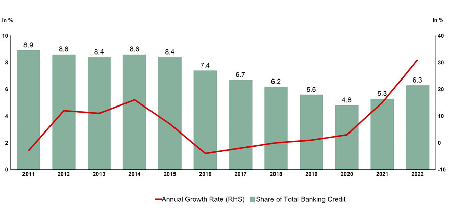 Figure 1. Growth and share of credit to MSMEs of total bank credit