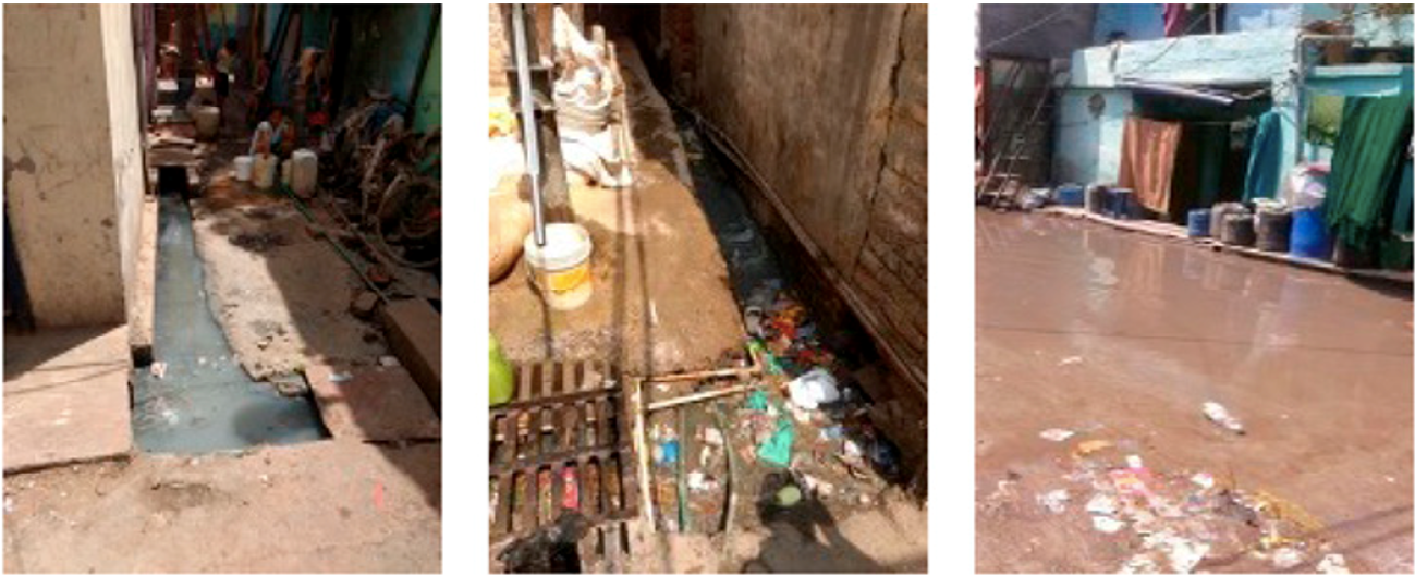We selected areas with varying levels of Hindu and Muslim diversity. Our intervention focused on drainage, a (near) pure public good that cannot be addressed by individual, uncoordinated solutions. Accumulation of garbage in one part of a neighbourhood causes drains to clog, and in turn affects the well-being of the entire community (Figure 1). Drainage is also one of the most deficient services in Delhi’s informal settlements, including in our site. While municipal workers did clean drains along the major roads, residents in most bastis were forced to maintain internal drains through their own efforts. Collective action in local communities, however, is complicated and shaped by a host of factors. To better understand the social and political life of our study site, we worked with a team of researchers from the Centre for Policy Research (CPR) who carried extensive qualitative fieldwork in our cases over a period of three months before the survey. Our case selection and research design were informed by their findings.