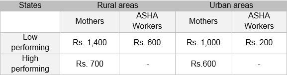 Table 1. Incentive amounts for mothers and ASHA workers under Janani Suraksha Yojana