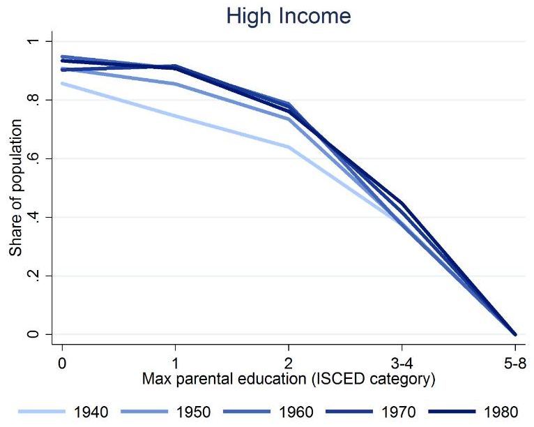 - Those with parents who have attained the highest (tertiary) level of education are excluded – when either parent has completed a tertiary degree, it is no longer possible for the offspring to have more education. An alternative way of dealing with this so-called “ceiling effect” yields comparable results (see the report).