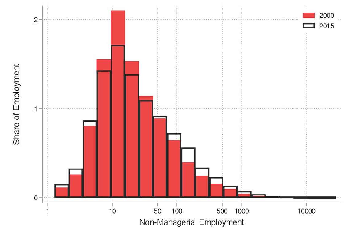 Figure 1. Firm size distribution, 2000 versus 2015