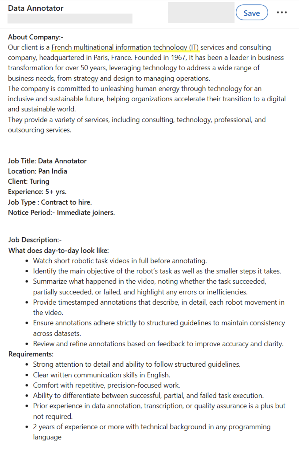 Figure 3. Data annotator – freelance