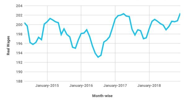 Note: Real wages have been obtained by deflating nominal wages by consumer price index, rural.