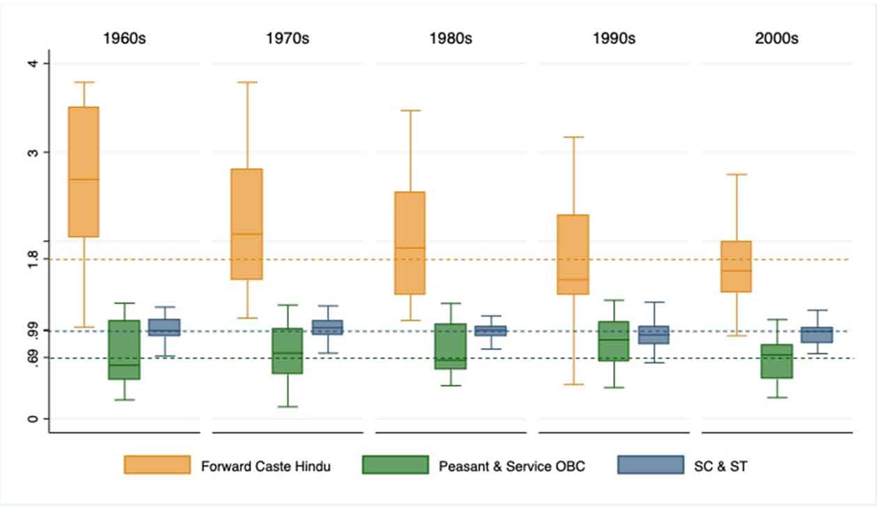 Figure 1. Distribution of caste-based representation in state legislatures, by decade