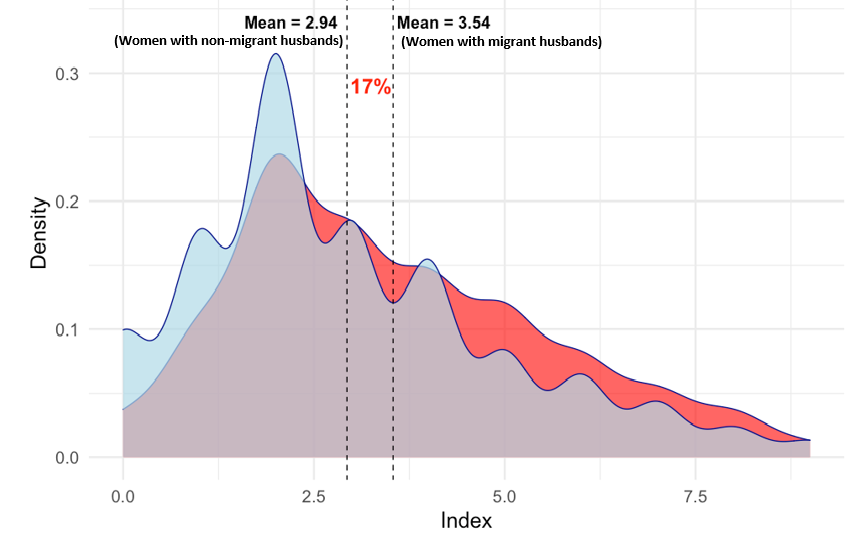- Differences-in-differences is a technique used to compare the evolution of outcomes over time in similar groups, where one experienced an event – in this case, having a migrant husband – which the other did not.