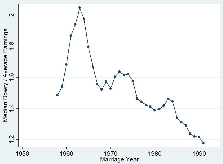अर्थशास्त्र में दहेज पर प्रचुर सैद्धांतिक साहित्य मौजूद हैं जिसमें दहेज के अस्तित्व में रहने की संभावित व्याख्या करने वाले अनेक मॉडल उपलब्ध हैं। मगर आश्चर्य की बात यह है कि इन व्याख्याओं की जांच के लिए, या यह दर्शाने के लिए कि समय के साथ भारत में दहेज का कैसे उद्भव हुआ है, बहुत कम परिमाणात्मक प्रमाण मौजूद हैं। हमारे विश्लेषण (चिपलूणकर और वीवर 2019) का लक्ष्य दुहरा है: पहला तो यह कि भारत में बीसवीं सदी के अधिकांश हिस्सों में वैवाहिक प्रचलनों और दहेज के बारे में तथ्यों को प्रमाणित करने के लिए हमने अनेक डेटासेट का उपयोग किया है। और दूसरा यह कि इन आंकड़ों का उपयोग हमने दहेज के विकास पर मौजूद विभिन्न सिद्धांतों की प्रमाण-आधारित जांच के लिए किया है। दहेज के मूल कारण को समझना उपयुक्त नीतिगत प्रतिक्रियाएँ तैयार करने के लिए उपयोगी है।