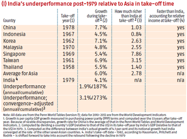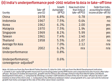 The assessment that follows has four features. First, the benchmark is seven Asian countries - China, Indonesia, Korea, Malaysia, Singapore, Taiwan and Thailand. Second, the comparison is not in chronological time but in ‘take-off time’. That is, India´s growth performance in the good years is compared with the growth of the other countries during their respective high-growth episodes.