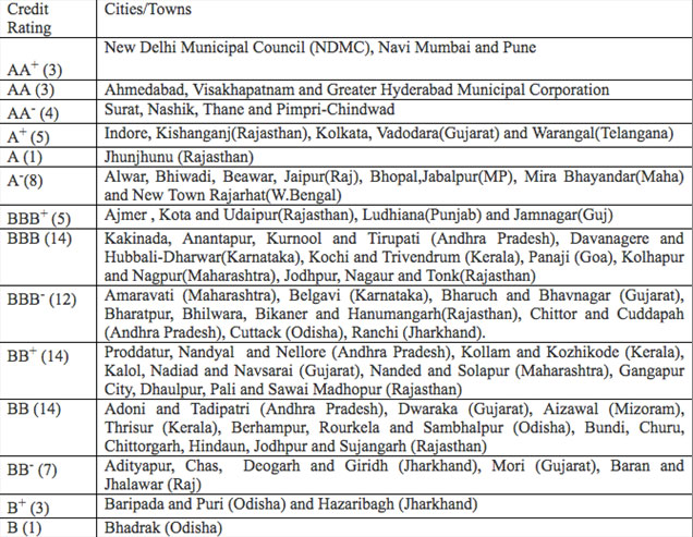 Table 1. Credit Ratings of 94 Smart Cites and AMRUT cities
