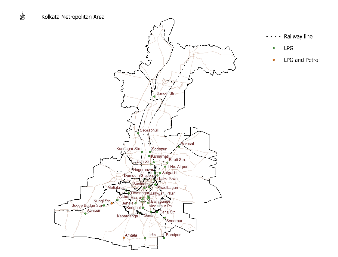 कोलकाता में वायु की गुणवत्ता में सुधार के प्रयास में 18 जुलाई, 2008 को कलकत्ता उच्च न्यायालय ने आदेश दिया कि सभी धुआँ उगलने वाले पेट्रोल ऑटो रिक्शा (इसके बाद ऑटो के रूप में संदर्भित) को बदल कर पेट्रोल के स्थान पर तरलीकृत पेट्रोलियम गैस (एलपीजी) ईंधन से चलाया जाए। भले न्यायालय ने कोलकाता और ग्रेटर कोलकाता के मुख्य शहर में एलपीजी के उपयोग को अनिवार्य कर दिया था, पर क्या ऑटो ड्राइवरों ने इस फैसले के एक दशक बीत जाने के बाद वास्तव में इसका अनुपालन किया है और 'हरित ईंधन' का उपयोग किया है? इस प्रश्न का उत्तर खोजने के लिए, हमने मुख्य शहर (यानी, कोलकाता नगर निगम (केएमसी)) और इसके उपनगरीय किनारे (जुलाई 2022 के अनुसार केएमसी के बाहर के क्षेत्र (आकृति 1 देखें) दोनों में स्थित विभिन्न स्टैंडों के 209 ऑटो ड्राइवरों का सर्वेक्षण किया। केएमसी कोलकाता पुलिस के अधिकार क्षेत्र में आता है, जबकि केएमसी के बाहर के कई क्षेत्र पश्चिम बंगाल पुलिस के अंतर्गत आते हैं: हमारा मानना है कि यह प्रशासनिक सीमांकन हमारे अध्ययन के लिए महत्वपूर्ण है। हालांकि पश्चिम बंगाल पुलिस को विभिन्न पुलिस आयुक्तालयों में उप-वर्गीकृत किया गया है, हमने अपने अध्ययन हेतु ऐसे सूक्ष्म वर्गीकरण का उपयोग नहीं किया है।