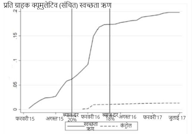 दूसरी ओर, कम ब्याज दर स्वच्छता से भिन्न अन्य प्रयोजनों के लिए ऋण लेने वालों परिवारों के लिए ऋण को आकर्षक बना देती होगी। उन परिवारों को सस्ता ऋण उपलब्ध कराने से स्वच्छता संबंधी ऋण लेने के बावजूद स्वच्छता संबंधी निवेश नहीं बढ़ सकता था। साथ ही, यह देखते हुए कि स्वच्छता संबंधी निवेशों पर आर्थिक रिटर्न मिलने में अपेक्षाकृत अधिक समय लगता है, परिवारों को कर्ज चुकाने के लिए संघर्ष करना पड़ सकता था, और इसलिए वे उसका उपयोग दूसरे मकसद से कर सकते थे।